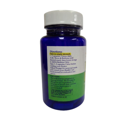 Directions: Take on empty stomach. Take 1 capsule in the am and 1 capsule before bed. Adjust dosage as needed.